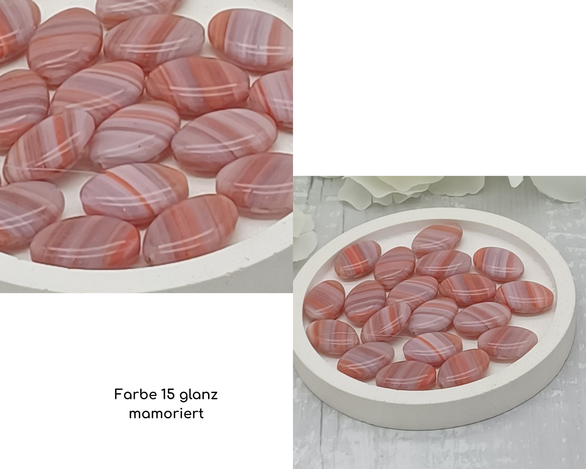 Die Oberfläche der Perlen überzeugt durch einen glänzenden Look – perfekt für elegante Ketten, Armbänder oder Statement-Ohrringe.
