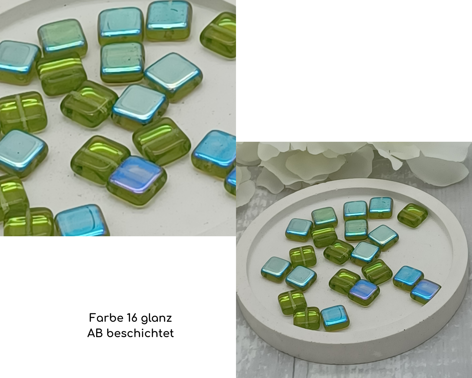 Tipp: Diese Plättchen-Perlen lassen sich wunderbar mit runden oder geometrischen Glasperlen kombinieren – für abwechslungsreiche Designs mit Tiefe und Glanz.