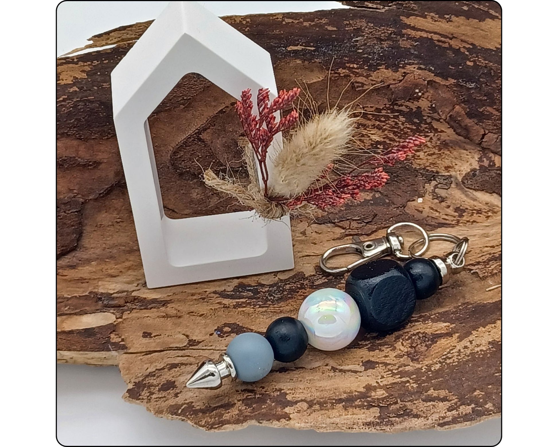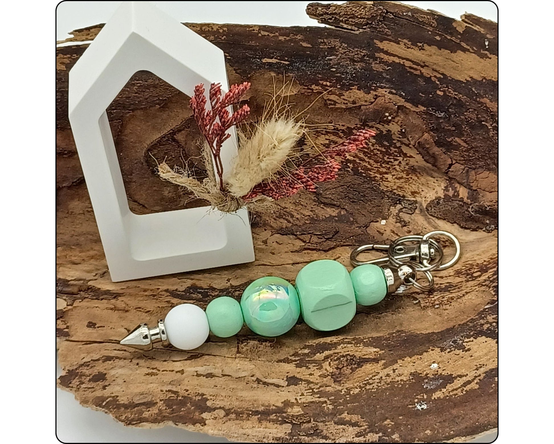 Schlüsselanhänger verschiedene, Holz- und Silikonperlen