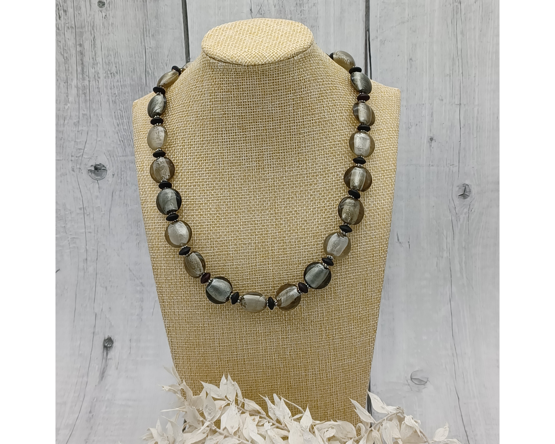 Unikat Böhmische Glasperlen mit Polarislinsen, grau- Sanna