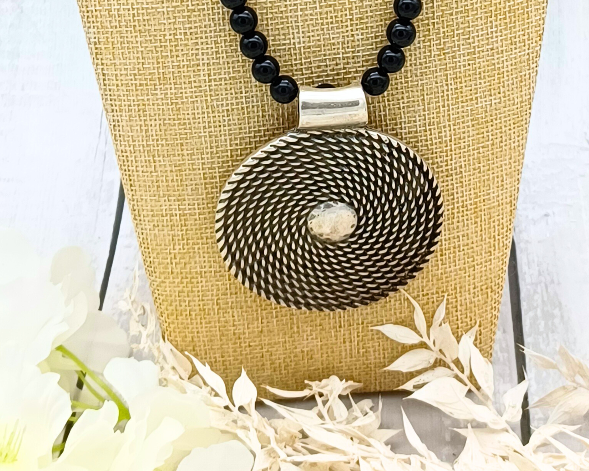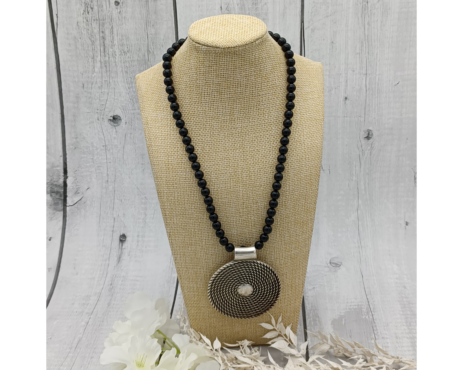 Unikatkette mit schwarzen Perlen und großem Silberanhänger – Stilvoll. Ausdrucksstark. Einzigartig.