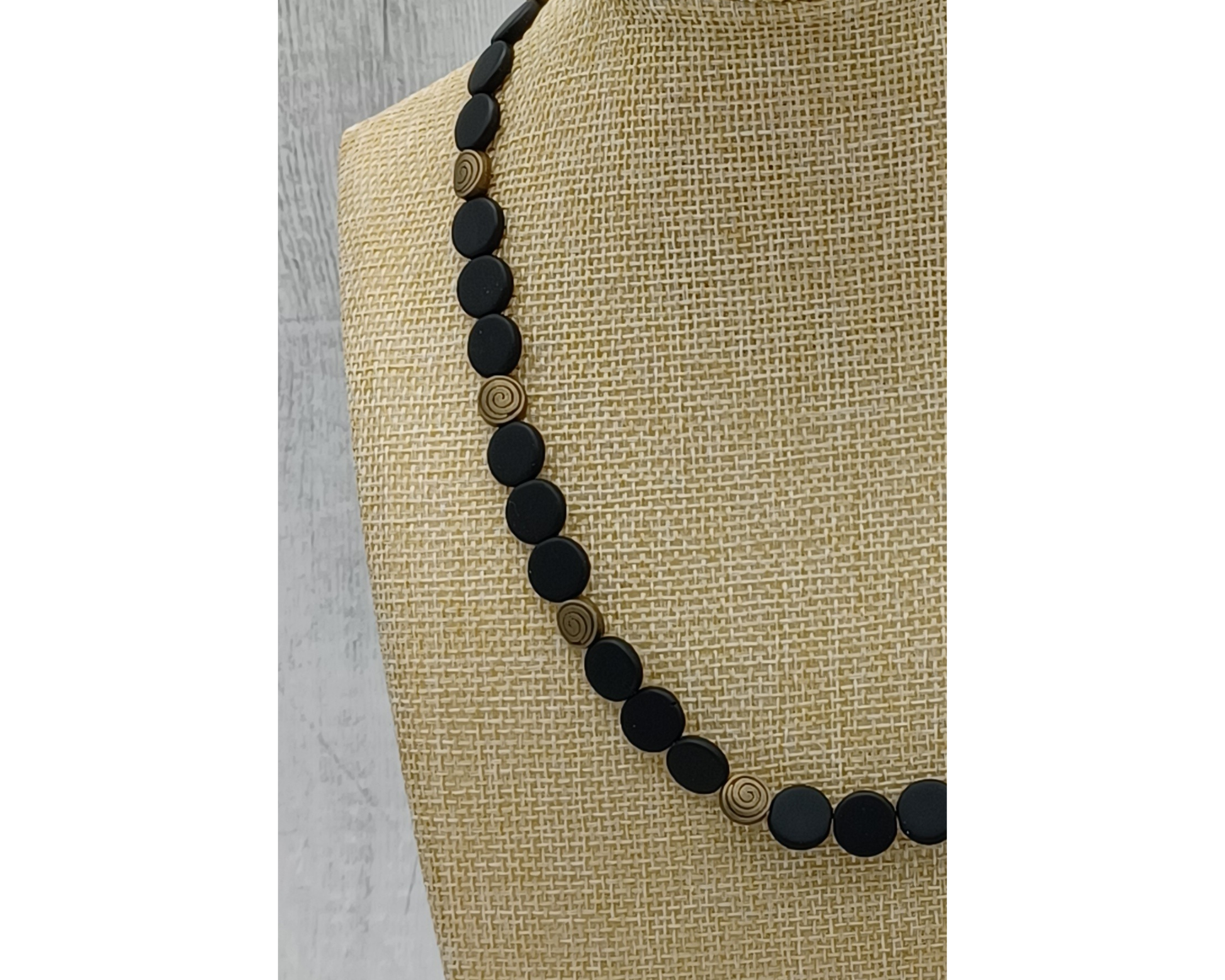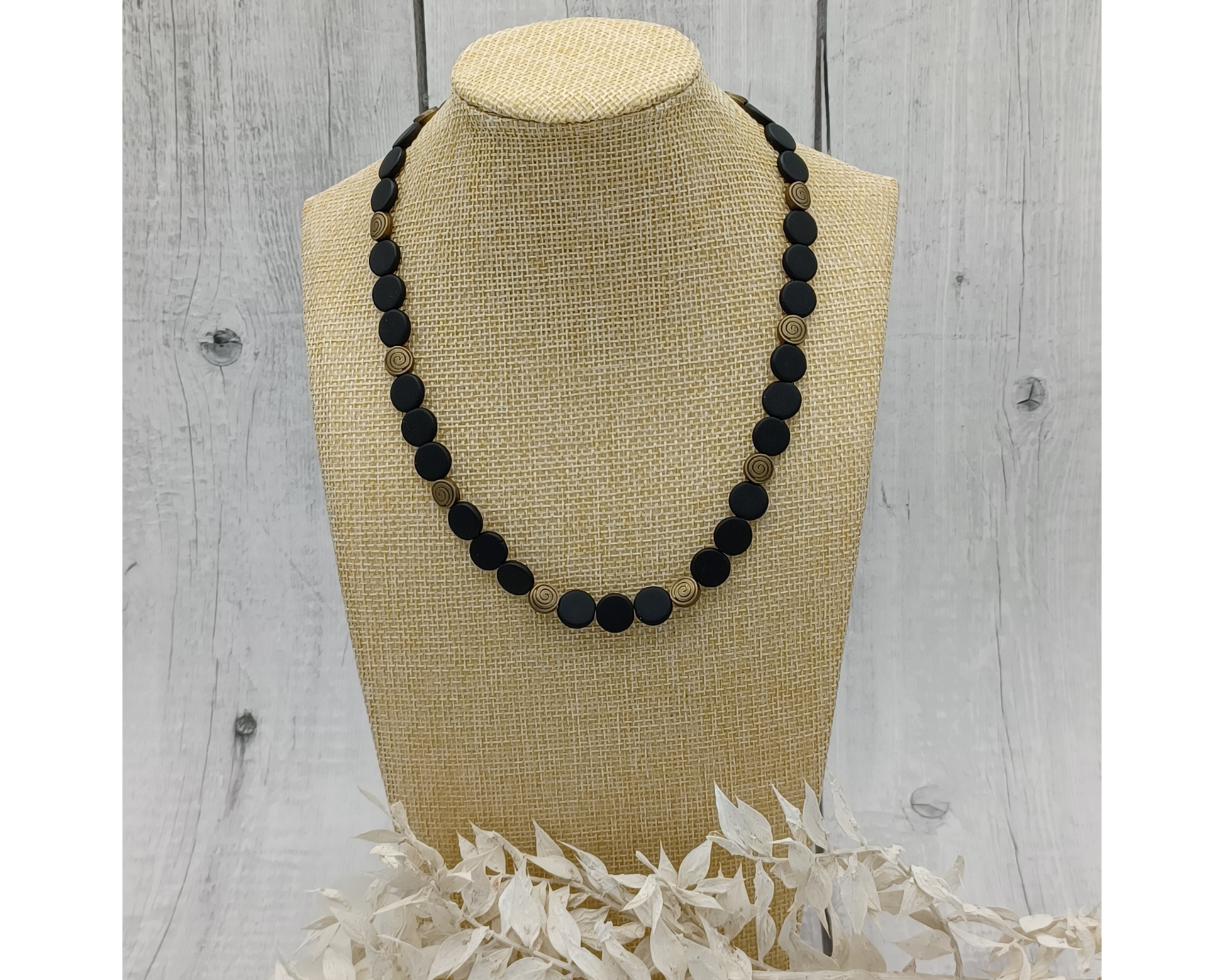 Unikat schwarze Perlen- Plättchen mit bronzefarbenen Ornamenten- Sarina